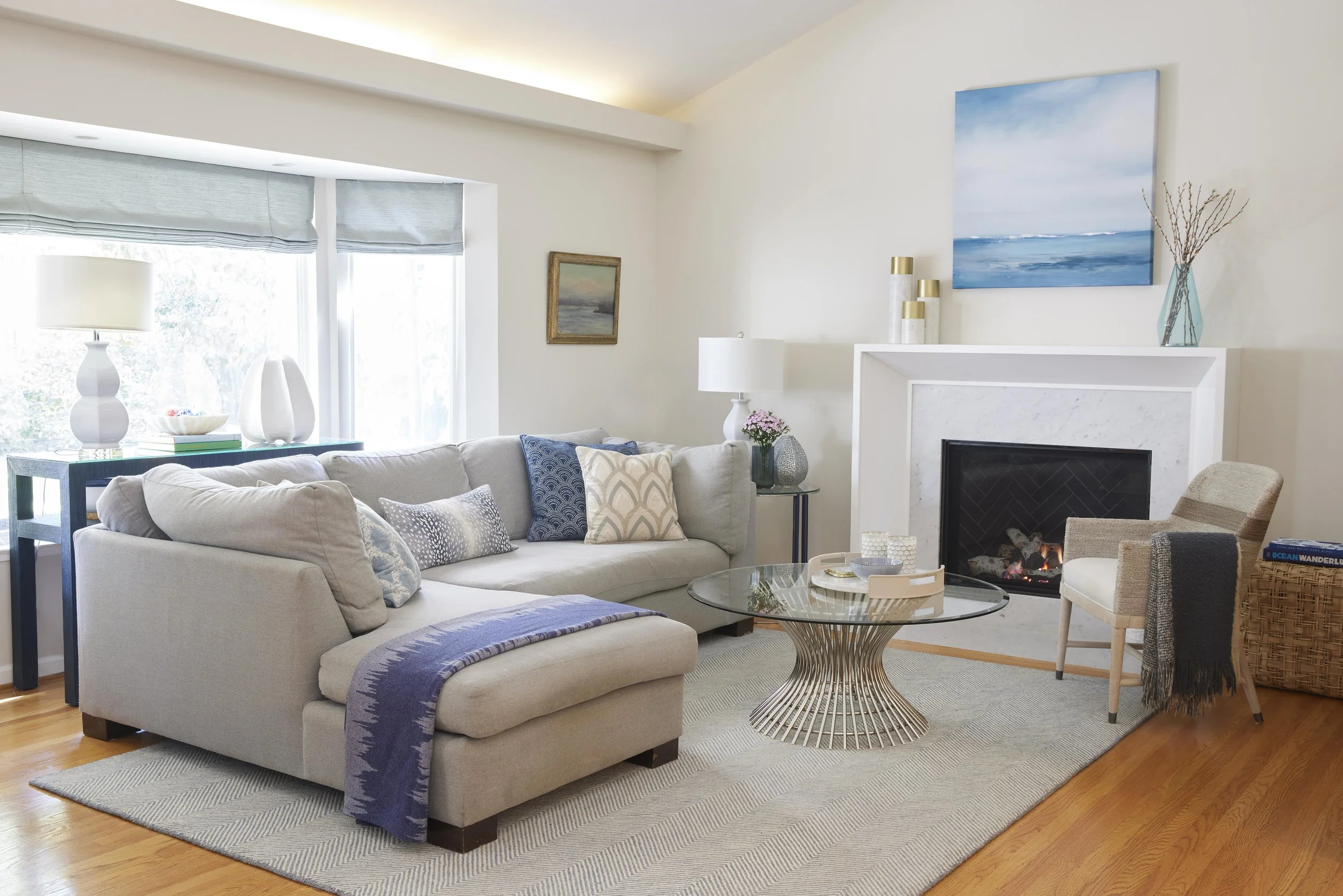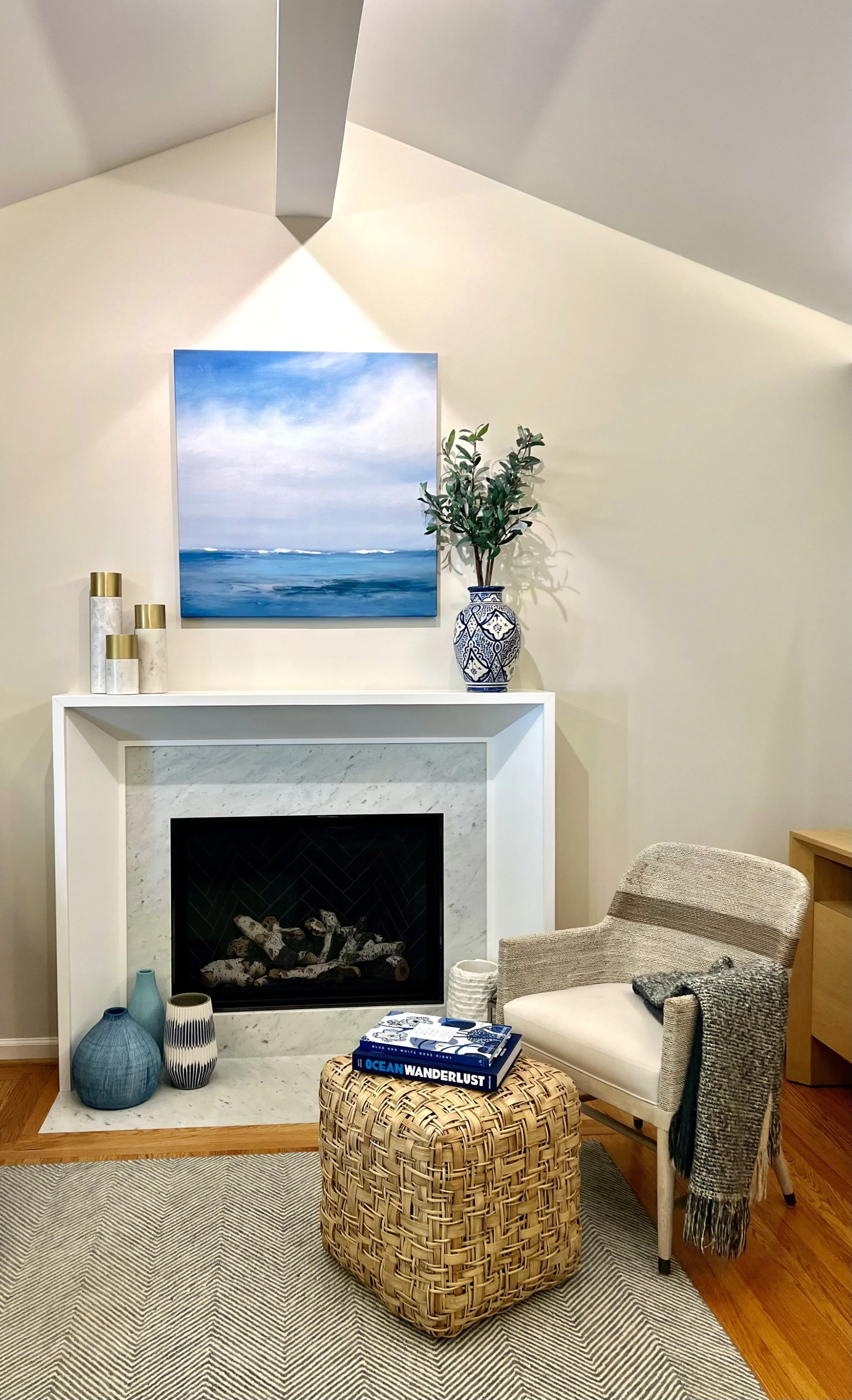 When you walk into the bathroom the first thing you see is the vanity, so we wanted to add a feature wall with herringbone marble tile all the way to the ceiling. The original vanity housed only one sink, so we of course installed a dual vanity, with white shaker cabinets to keep it crisp. We also installed a coordinating linen closet for extra storage. We finished with shiny chrome hardware to give these classic cabinets a little glam.
